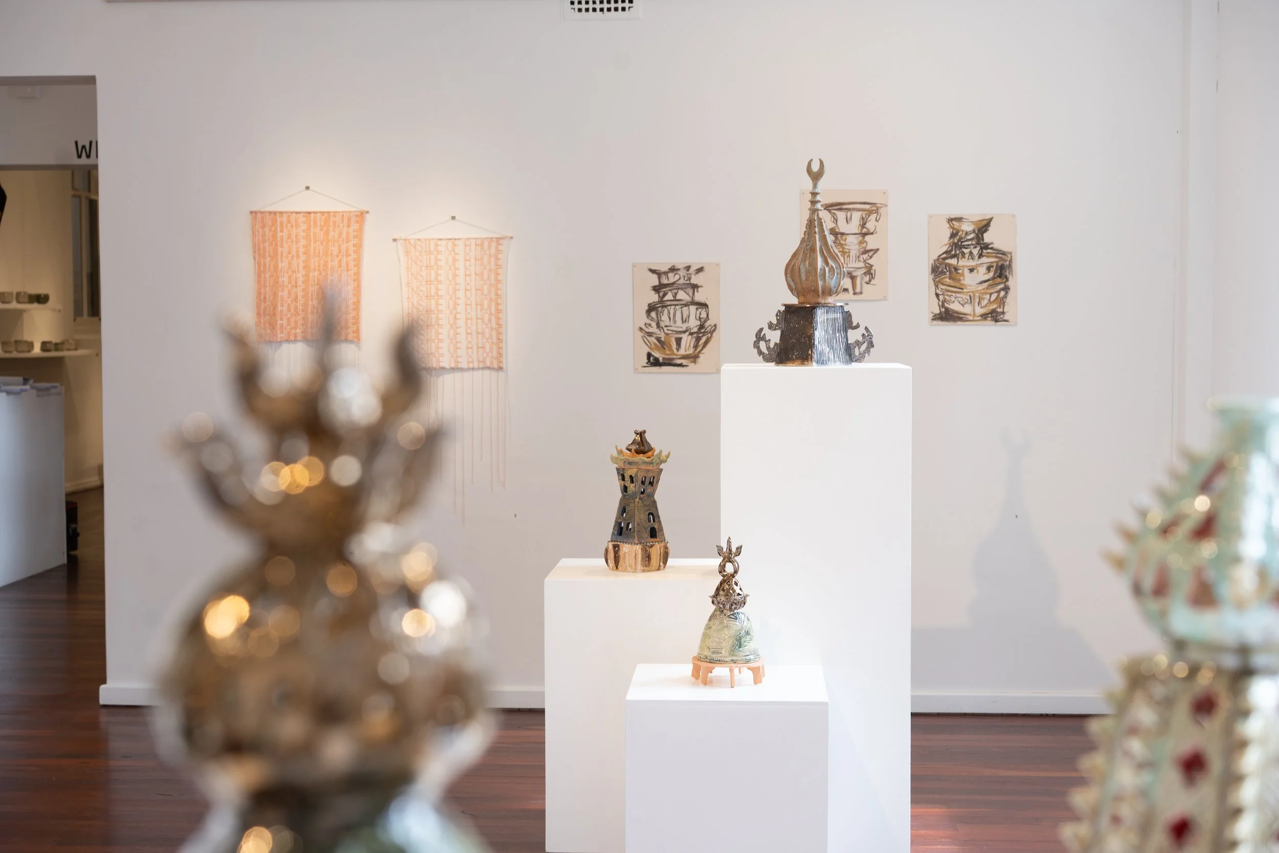 Inspired by the complexities of his Melayu-Javanese-Acehnese heritage and Singaporean upbringing, Ben-Dzulkefli explores the visual language of gunungan offerings, hantaran and sesaji to create these frankensteinian stacked site markers that function as monuments for finding one’s bearings, offerings to the co-collaborators who have existed in Boorloo and the areas surrounding Swan Valley where he chose to make a home. What aspects of one’s identity are layered with new ones developed along the way? What social mores from his old home-island does he marinate with new ones he encountered here? How do we let our emotions and memories ferment into new lived experiences? If memories and belonging is tactile, what would they feel like on our fingertips, face and lips?